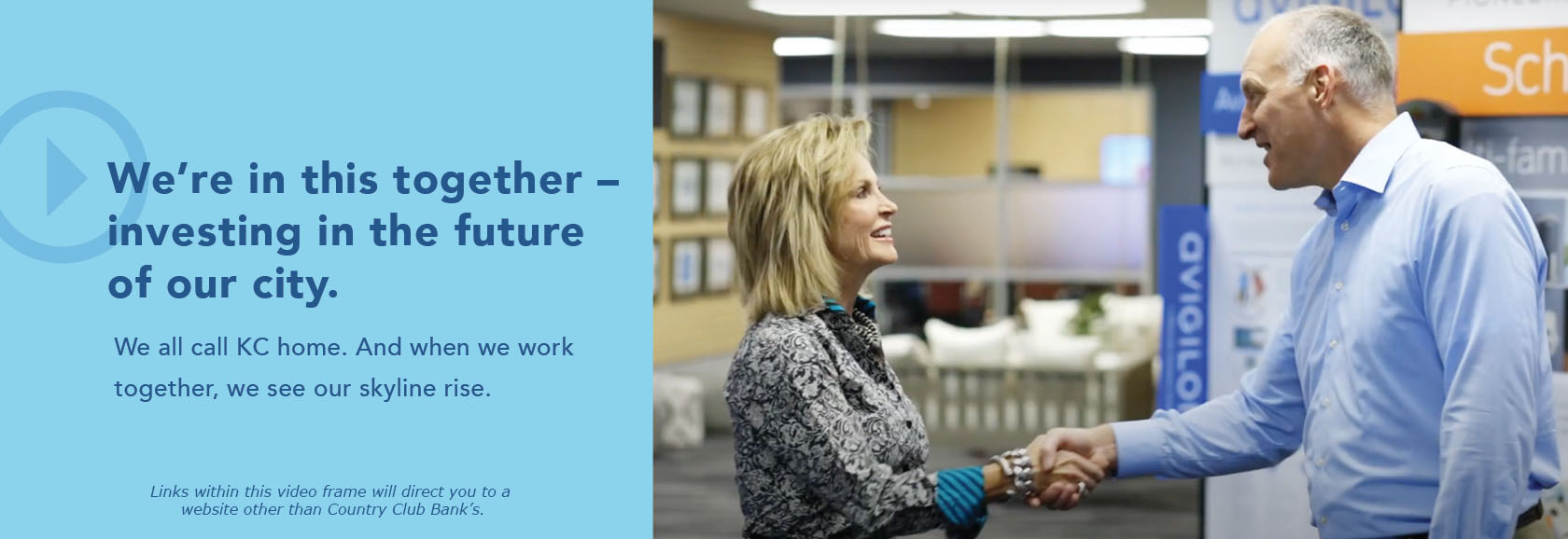There's no place like home. For generations we've been proud to call Kansas City ours. At Country Club Bank, we're local, homegrown and understand what it means to live here, do business here and raise a family here. Recognized as one of the best banks in Kansas City, we understand that financial decisions affect virtually every aspect of your life, throughout every stage of your life – together, we can help chart a course for you, your loved ones or your company to plan, prosper and preserve. Whether you're interested in commercial banking, small business banking or personal banking, we'll make sure it always feels like homegrown banking.