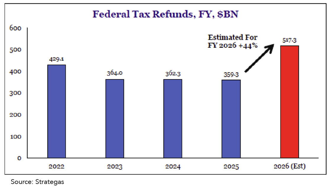 - A healthy wave of anticipated income tax refunds during the early portion of 2026