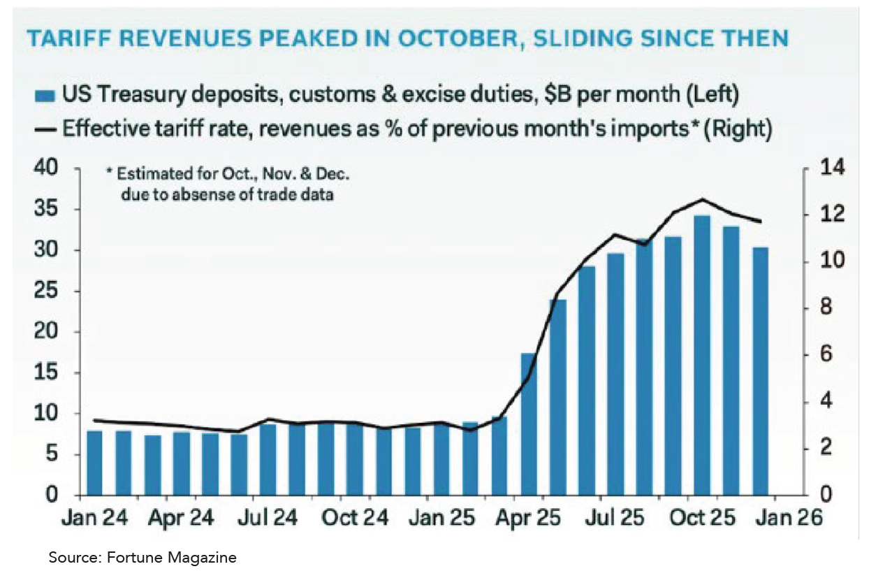 What would a quarterly update in 2025 be without at least a brief discussion of tariffs? As has been well documented, legal challenges to President Trump’s use of executive power to implement tariffs are now in the hands of the Supreme Court. Trade and legal experts see a material probability that during the initial quarter of 2026, the Court will rule against the use of emergency powers (IEEPA) to authorize tariffs. If this indeed ends up being the case, what will be the outcomes? Will the collected tariffs be refunded? If so, what will be the logistics required to do so? Will another tariff mechanism be utilized? Multiple alternative legal authorities are presumably available to the administration to still implement tariffs at present levels. It has been contemplated that a full replacement plan could be put in place to immediately reinstate approximately 80% of tariffs more or less on day one. We shall see, although it seems like a scenario of “how” versus “if”.