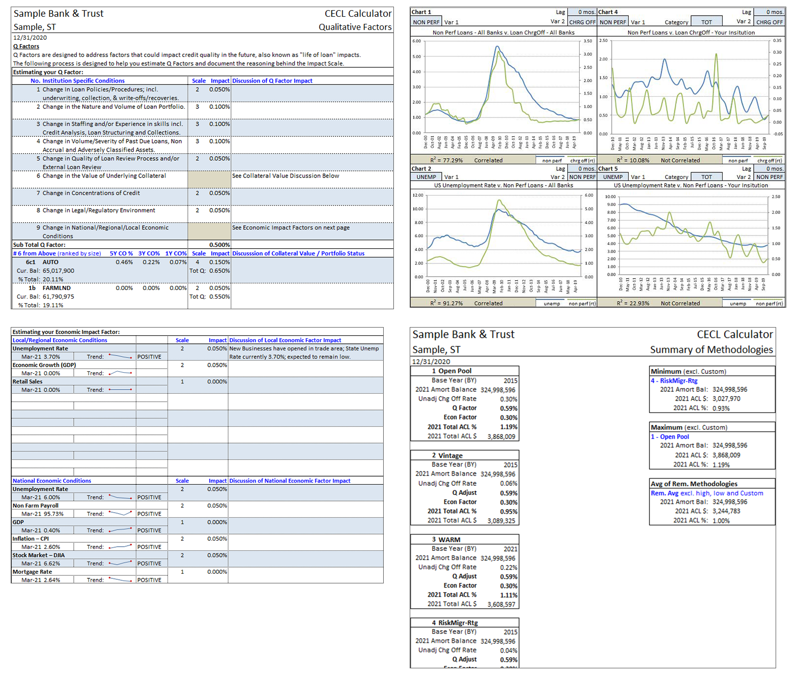 This CECL calculator is designed to provide a comprehensive analysis of multiple methodologies for comparison and validation, allowing you to evaluate and customize a method tailored specifically to your institution.