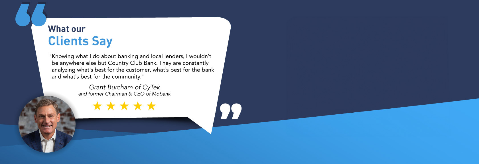 There's no place like home. For generations we've been proud to call Kansas City ours. At Country Club Bank, we're local, homegrown and understand what it means to live here, do business here and raise a family here. Recognized as one of the best banks in Kansas City, we understand that financial decisions affect virtually every aspect of your life, throughout every stage of your life – together, we can help chart a course for you, your loved ones or your company to plan, prosper and preserve. Whether you're interested in commercial banking, small business banking or personal banking, we'll make sure it always feels like homegrown banking.