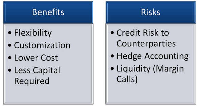 - Customization - transactions can be customized to fit specific needs based on structure, size, timing, coupons, etc. If banks want to hedge interest rate risk at the loan level, the swap can be customized all the way down to the amortization schedule. This allows a bank to hedge exactly the risk they are concerned about, and the perfect match greatly simplifies the accounting.