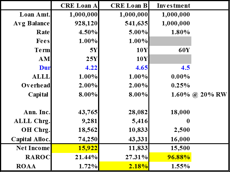And surprisingly, the investment alternative is second to Loan A in Net Income, and not a too far distant third in ROAA.