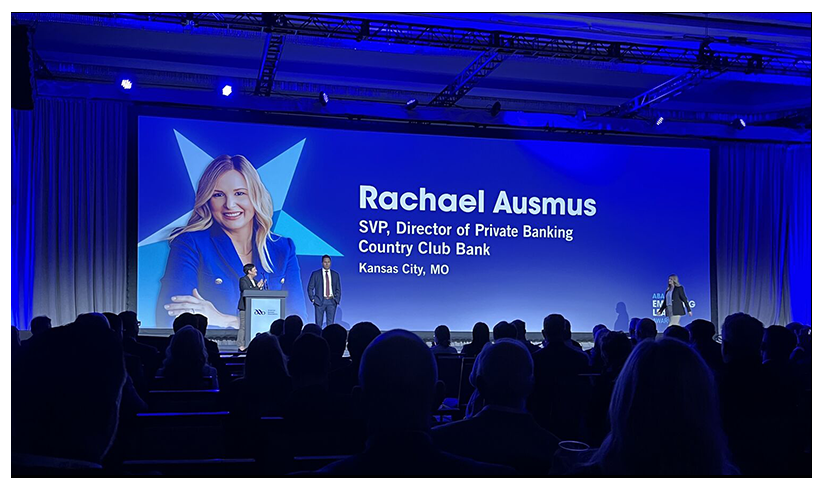 Kansas City – Rachael Ausmus, Director of Private Banking at Country Club Bank was honored by the American Bankers Association as a recipient of its 2024 ABA Emerging Leader Awards during the ABA Annual Convention in New York. This award recognizes the next generation of bank leaders who are committed to the highest standards of achievement and service to both their industry and local communities.