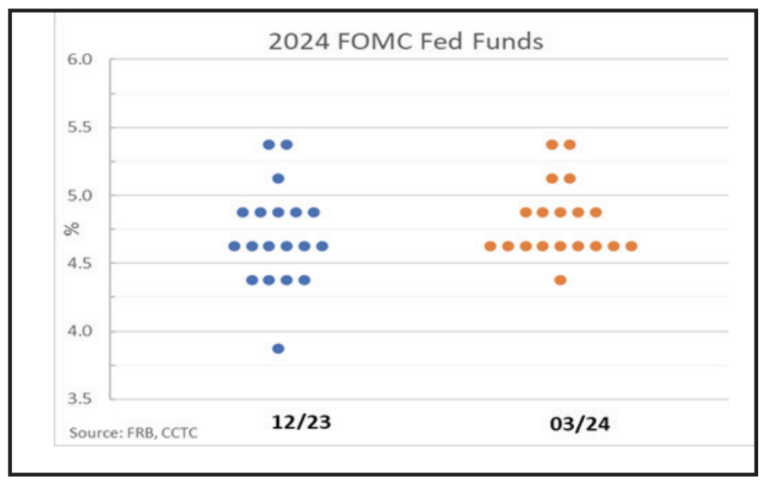It was no surprise to market participants that the Federal Reserve’s Open Market Committee (FOMC) left rates unchanged at its two-day meeting ending on March 20th. There were a couple of interesting tidbits, none-the-less. One, Chairman Powell confirmed that it’s quantitative tightening program could slow “fairly soon.” Second, in our opinion, markets did not judge changes to the Fed’s dot plot, or end of year 2024 Fed Funds rate, as significant.