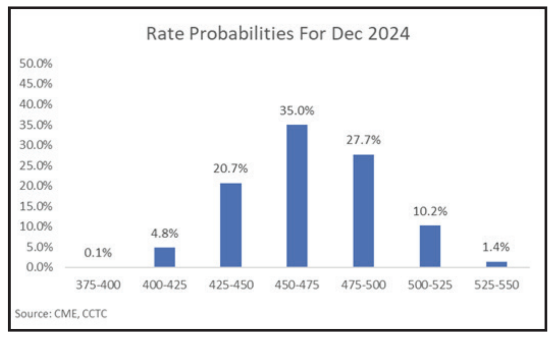 FOMC Fed Funds graphOnce a quarter, the FOMC releases a Summary of Economic Projections (SEP) at the conclusion of its regularly scheduled meeting. Both bond and equity market investors anxiously wait for what could be market-moving news. There was little new information contained in the March 20 SEP. However, that was a boon for markets as the 10-Treasury yield dropped 0.09 percentage points over the following two days. Over the same period, the S&P 500 gained 1.2%. Why? No news was good news. Both bond and equity investors had been hedging themselves for a Fed decision that took one of three expected 0.25 percentage point rate cuts off the table for 2024. Recent economic data had moved in a direction that implied both the economy and inflation were stronger than anticipated, which could cause FOMC members to pull-back on rate cut expectations. Instead, the Fed barely leaned in that direction. But lean, they did. The median level of the dot plot submitted in the March SEP was unchanged from the December 2023 forecast of a 0.75 percentage point reduction in Fed Funds in 2024. However, the December projection had five dots below the median while the March SEP had only one. rate probabilities imageAlso, there was an additional dot higher than the median in March versus December. Although the significance is questionable, there was a slightly hawkish tone in the latest SEP. It is worth paying close attention to commentary from FOMC members over the coming months for signals that may affect near-term decisions on rate cuts. We believe most equity investors have penciled in three 0.25% rate cuts through 2024. Fed Funds futures are showing only a 35% chance of three cuts by December. Also, probabilities are skewed in a way that might leave equity investors somewhat disappointed at some point.