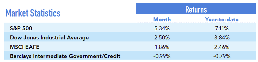 - Equity indices across the spectrum by and large posted strong gains for the month.